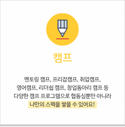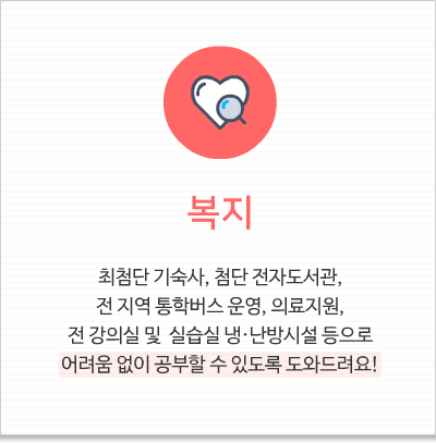 Challenge 8, 자기계발 프로그램 및 학생복지 구미대학교에서는 학생들의 역량강화를 위하여 다양한 자기계발 프로그램을 제공하고 있으며학생들이 공부에 어려움이 없도록 학생복지까지 신경쓰고 있습니다.